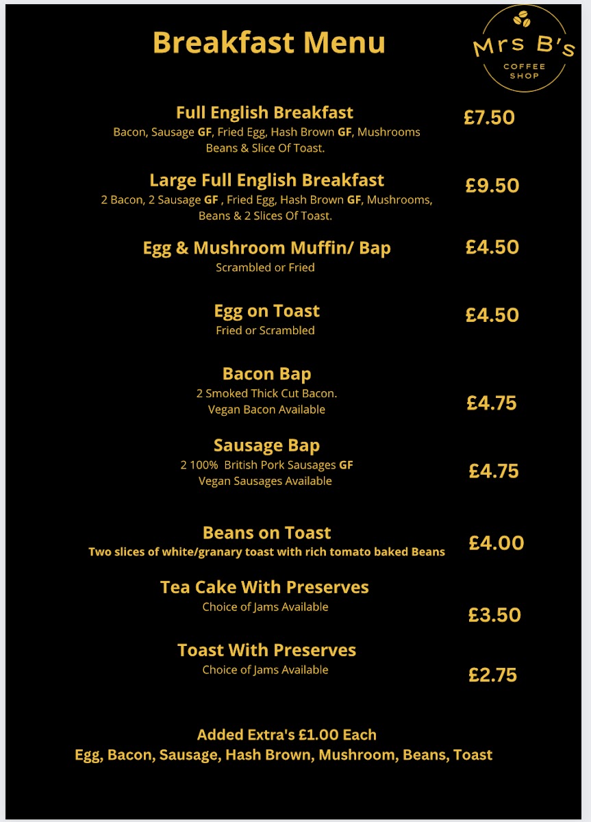 Discover the warmth and charm of Mrs B's Coffee Shop, nestled among the office buildings in Bradley Stoke, Bristol. This delightful café is celebrated for its inviting atmosphere and friendly service, creating a perfect spot for a casual bite or a relaxing coffee break.